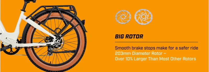 Big Sur is a 26 x 4” fat tire all-terrain e-bike, equipped with a powerful 750W Bafang rear hub motor. Big Sur is Class 2/3, meaning it'll take you up to 20mph using the throttle, and 28mph while pedaling. A specially-designed big headlight, extra-large 203mm brake rotors, LG 21700 battery cells, and a full UL2849 certification make Big Sur one of the safest e-bikes on the market. Sporting a bigger 52T crankset for stability at speed and a custom AIMA Comfort XL seat, Big Sur provides riders with a remarkably comfortable and smooth riding experience.