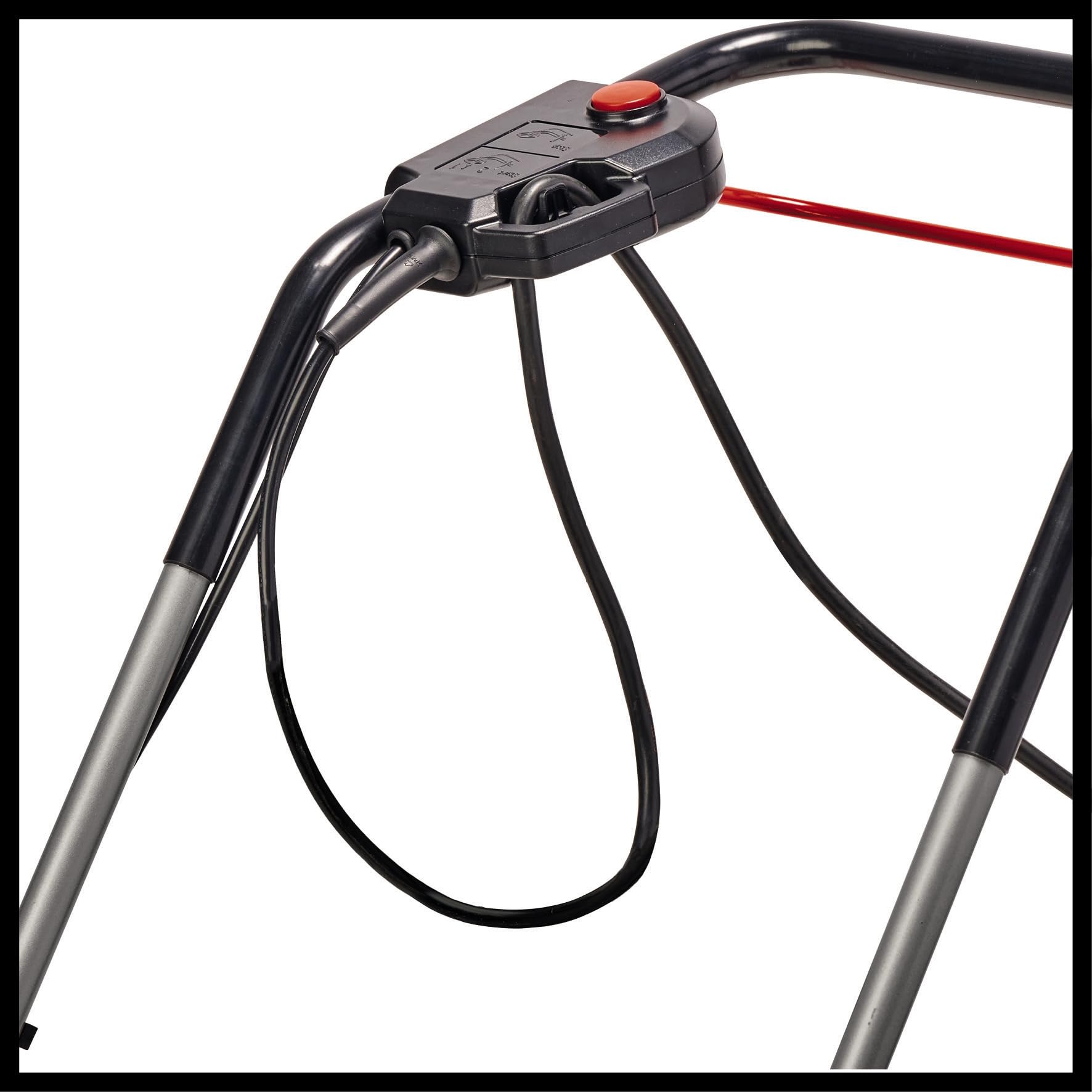 GERMAN DESIGN AT ITS BEST: The high-quality impact-resistant plastic housing is built to last. Due to the foldable guide bar, the electric lawn mower can be stowed away to save space and easily transported. It is supplied with a long, 10m power cord