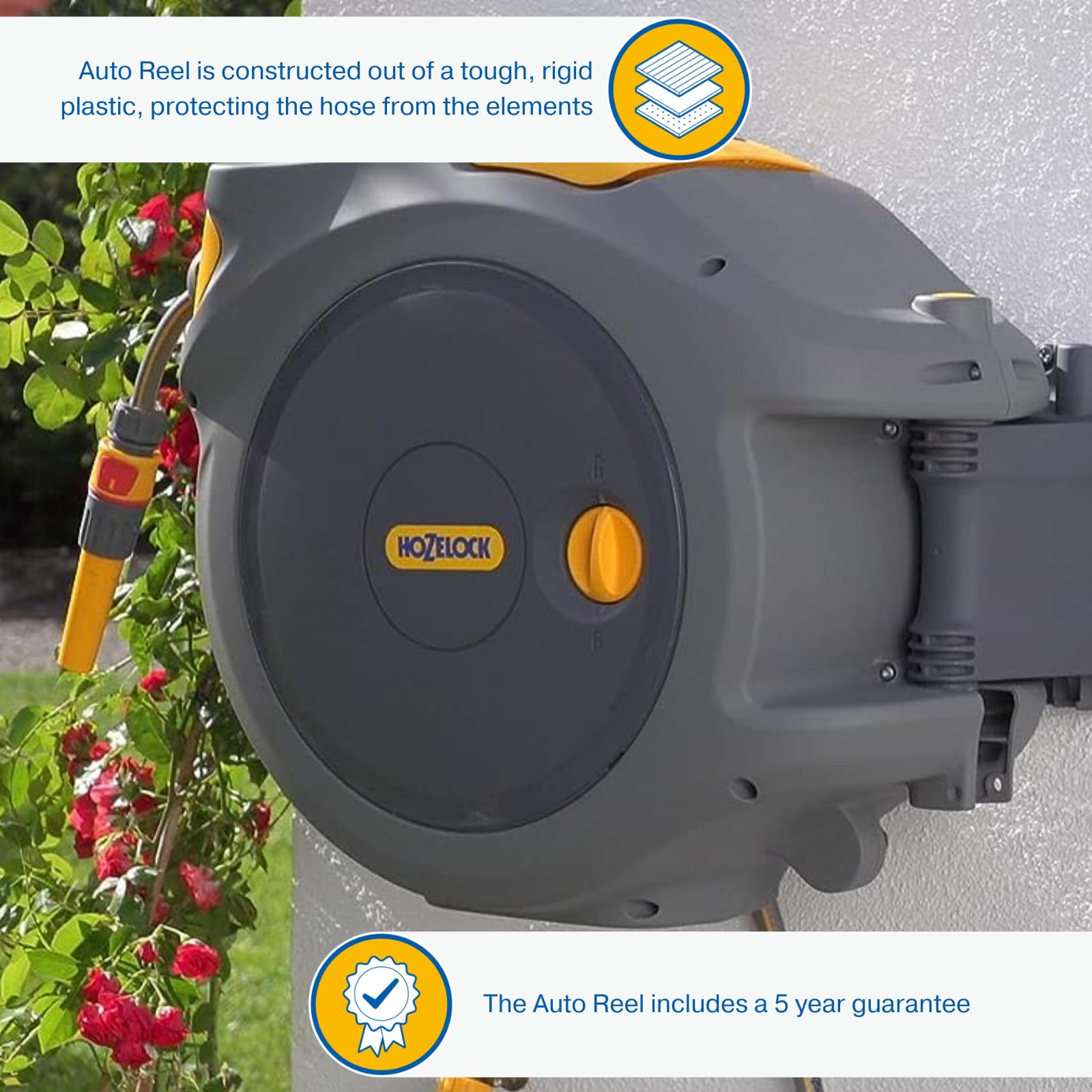 HOZELOCK - Auto Reel Wall-mounted 40m: Easy to Install, Child-lock, Auto-rewind