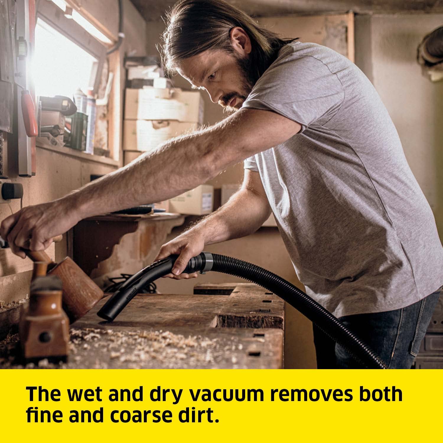 Scope of delivery: The Kärcher WD 5 Wet & Dry Vacuum Cleaner set includes a flat-pleat filter, fleece filter bag, floor and crevice nozzle, 2 suction pipes, and a suction hose