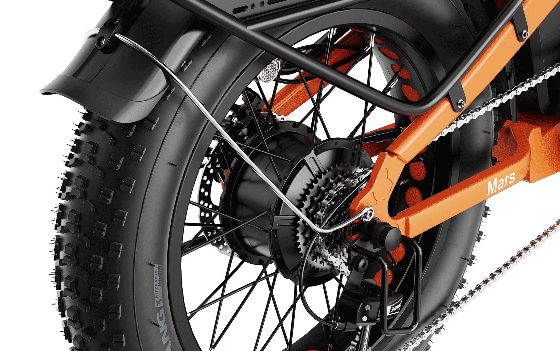 Compared to 750W, what is the advantage of Mars 2.0 with a 1000W motor?The 1000W rear hub motor generates more power output than 750W, and it brings the following advantages: greater speed, improved performance on inclines, enhanced load capacity, quicker acceleration and better responsiveness. You can climb hills more easily and maintain speed on challenging surfaces. Besides, the 1000W Mars 2.0 is equipped with advanced hydraulic disc brakes to provide reliable braking power for enhanced safety and control during your rides.
