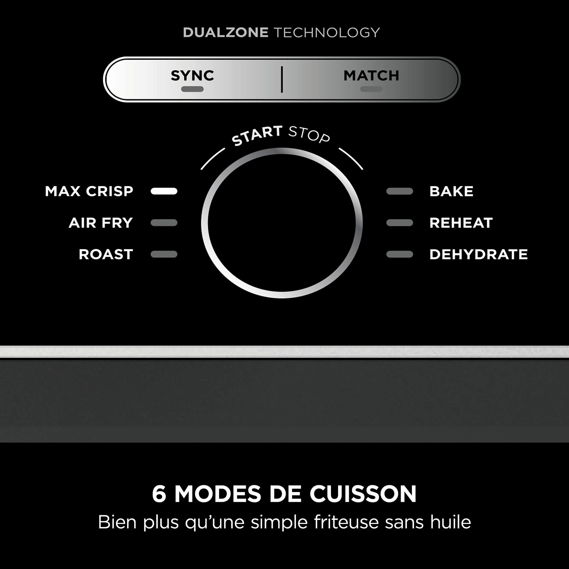2 INDEPENDENT COOKING ZONES: Cook 2 foods with different functions, times and temperatures in each drawer to prepare complete meals in one appliance. INCLUDES: Ninja Foodi Dual Zone Air Fryer, 2x Non-Stick Dishwasher Safe Drawers (Total 9.5L Capacity) & Crisper Plates. Chef-Created Recipe Guide. Color: Black