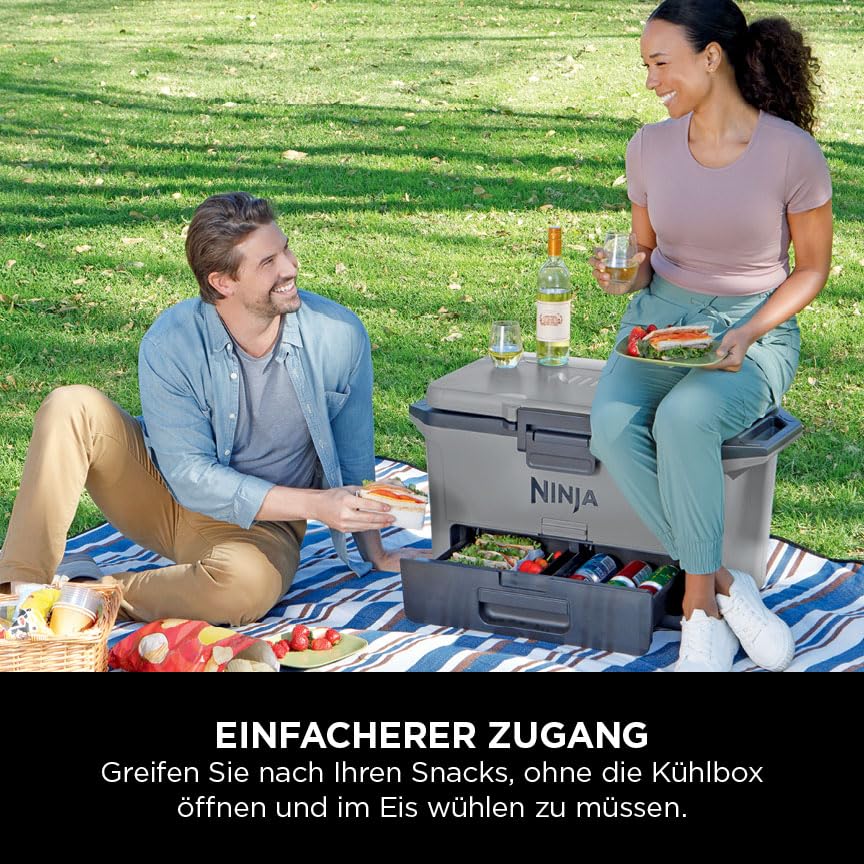 CONTAINS: Ninja FrostVault 50 Quart / 47 Litre Cooler with Integrated Dry Zone Drawer, Dimensions: H: 48 cm W: 45 cm D: 82 cm, Weight: 13.1 kg Colour: Slate Grey