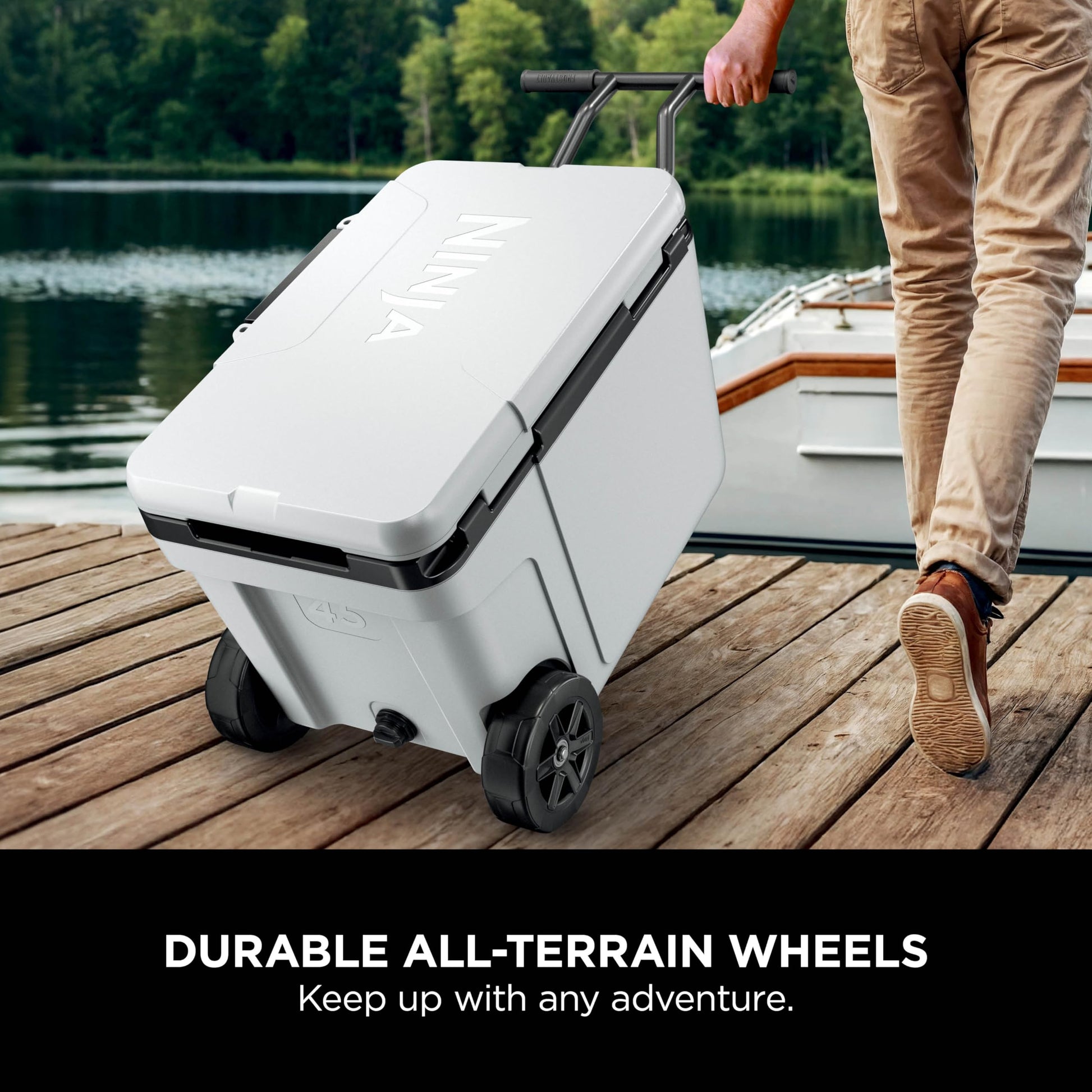 DURABLE, ALL-TERRAIN WHEELS: Wheeled cooler is easy to transport. Perfect for travelling, camping trips, picnics, BBQs, road trips and more.