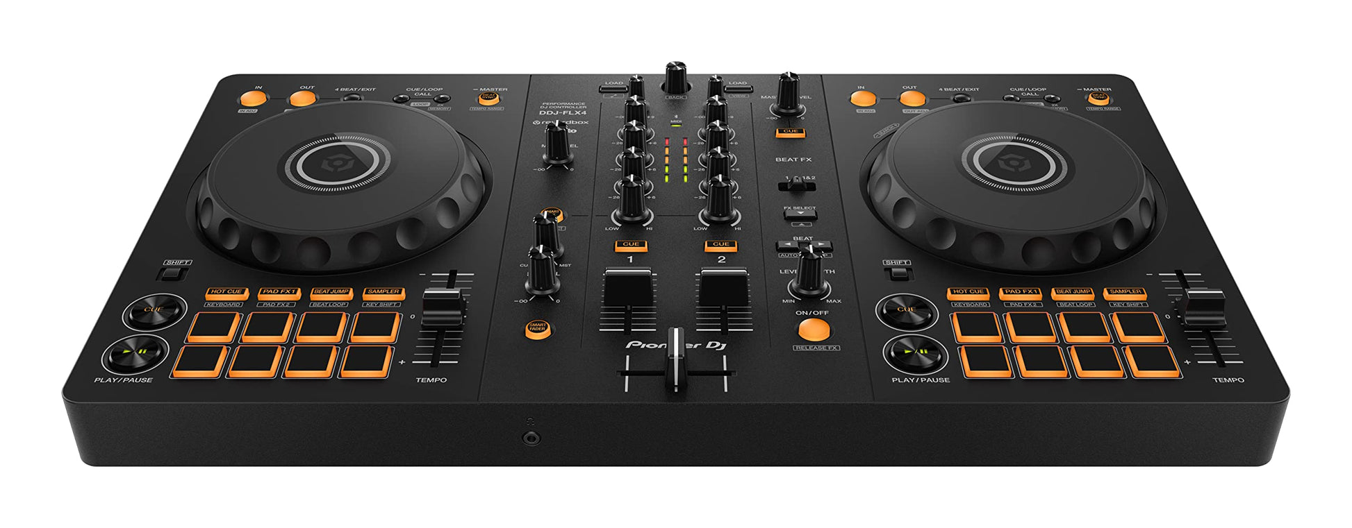 Details: The DDJ-FLX4 is a 2-channel console with a straightforward, user-friendly design and a professional look. You can use the free software for DJ rekordbox or Serato DJ Lite by connecting your PC/Mac to the DDJ-FLX4 to complete your DJ setup. If you want to upgrade to Serato DJ Pro, you can purchase a license or subscription to the premium version of the software. Whether you want to connect a PC, Mac, iPhone, iPad, or Android phone or tablet, the DDJ-FLX4 is versatile. And there's more: If you use the console with rekordbox for iOS/Android, when the update is available in early 2023, you can connect to the device via Bluetooth or USB. So there's nothing to stop you from becoming a DJ. The layout of the controls of the DDJ-FLX4 makes it easier to learn the tasks of a DJ and has been adopted by the professional products of Pioneer DJ Everything is easy to use and neat, so the console is compact enough to take with you wherever you want to practice or perform. If you don't know how to mix, you can get started right away with the Smart Fader feature. It automatically adjusts the volume, bass volume and BPM of the music, so you can easily switch between tracks by moving the channel faders or crossfaders. Plus, Smart CFX lets you apply a combination of effects by simply turning a knob that makes the sound even more dramatic. Rekordbox is compatible with multiple streaming services. You can then choose from millions of tracks available on TIDAL, Beatport Streaming, Beatsource Streaming and SoundCloud Go+ platforms (appropriate subscriptions required) and mix them together on DDJ-FLX4. You can also use all the effects and performance features to spice up your favourite songs and create your own sound. The DDJ-FLX4 makes it easy for you to moderate or sing during your set, because it mixes the tone for you.