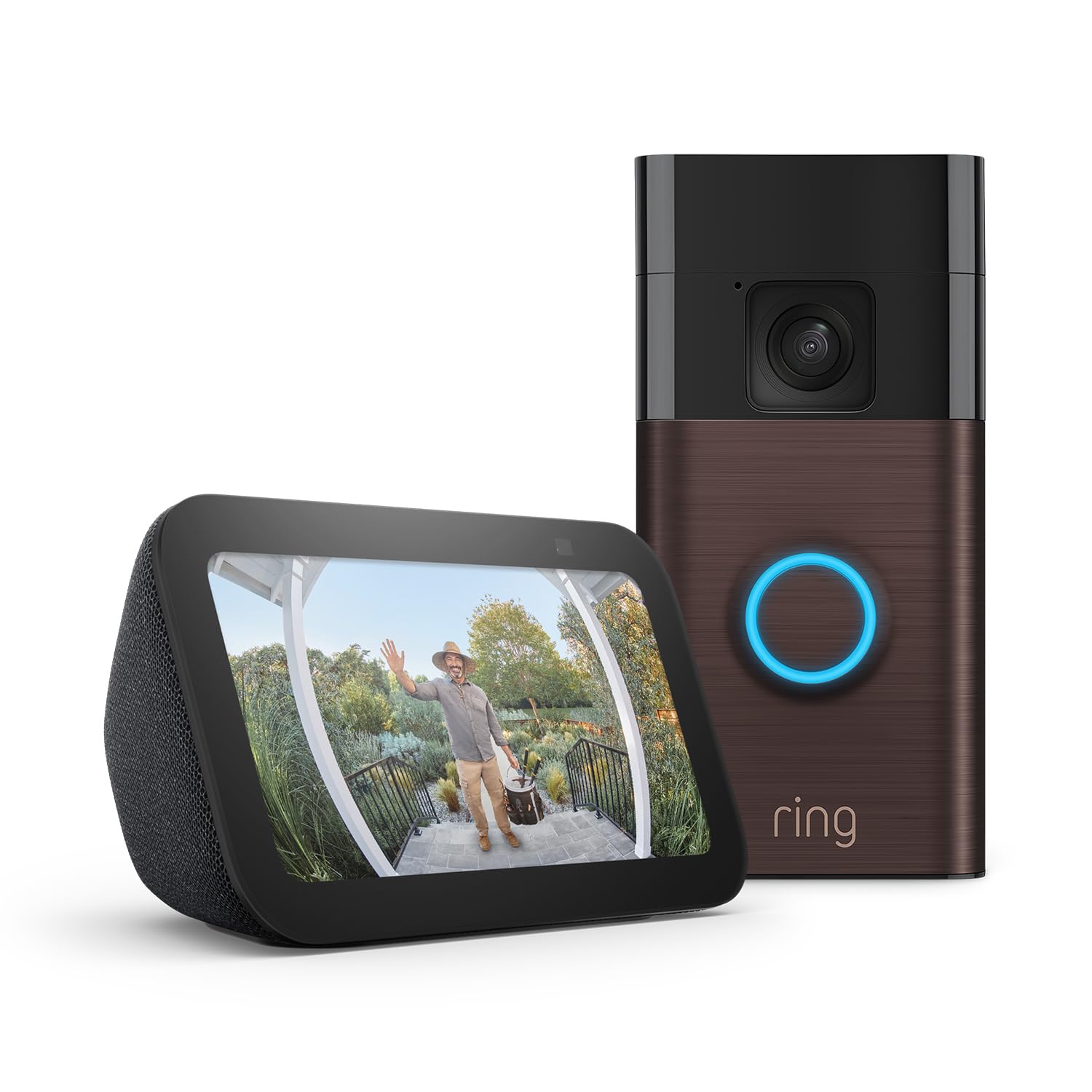 This bundle includes 1 of Ring Battery Video Doorbell, Venetian Bronze and 1 of Echo Show 5 - everything you need to start your smart home.