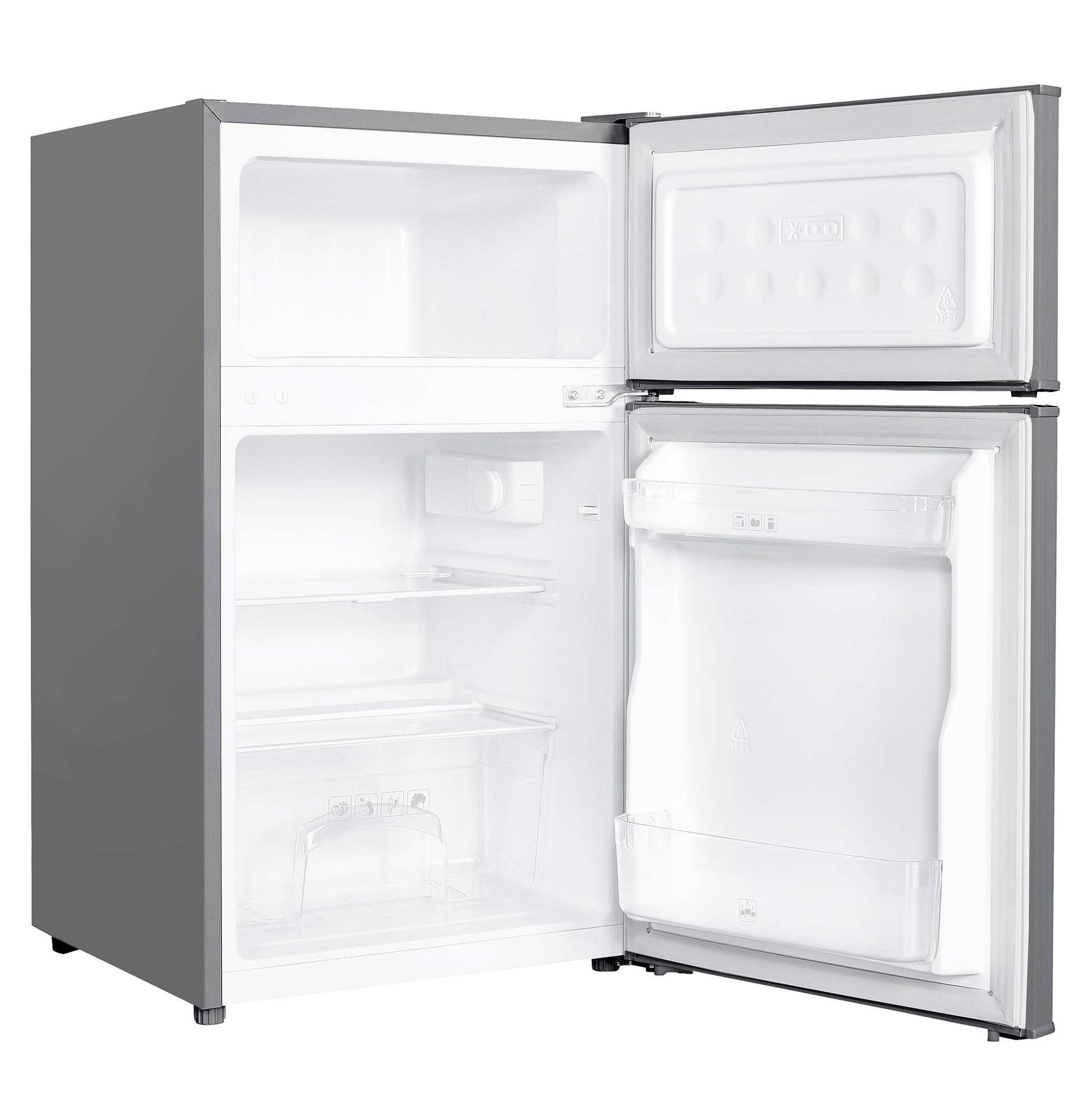 ADDITIONAL FEATURES – This under-counter fridge-freezer features an adjustable thermostat and reversible door for versatility, as well adjustable feet, making sure it stays level on any surface