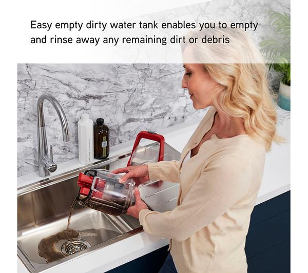 - This Vax SpotWash's powerful suction and deep hygienic cleaning make easy work of the toughest stains - It works on all sorts of surfaces such as carpets, upholstery and hardwood floors – everyday marks and spills are sent packing - Clean your stairs without heavy lifting with the long-reach hose and slender design - just pop it on a step and clean away - The dirty water tank has a large opening so it's super easy to empty down the sink - The self-clean function flushes the hose out to get rid of debris and hair, so it'll be ready to go the next time you need it - You don't need a ton of space for storage – it'll fit in a small cupboard thanks to the compact design