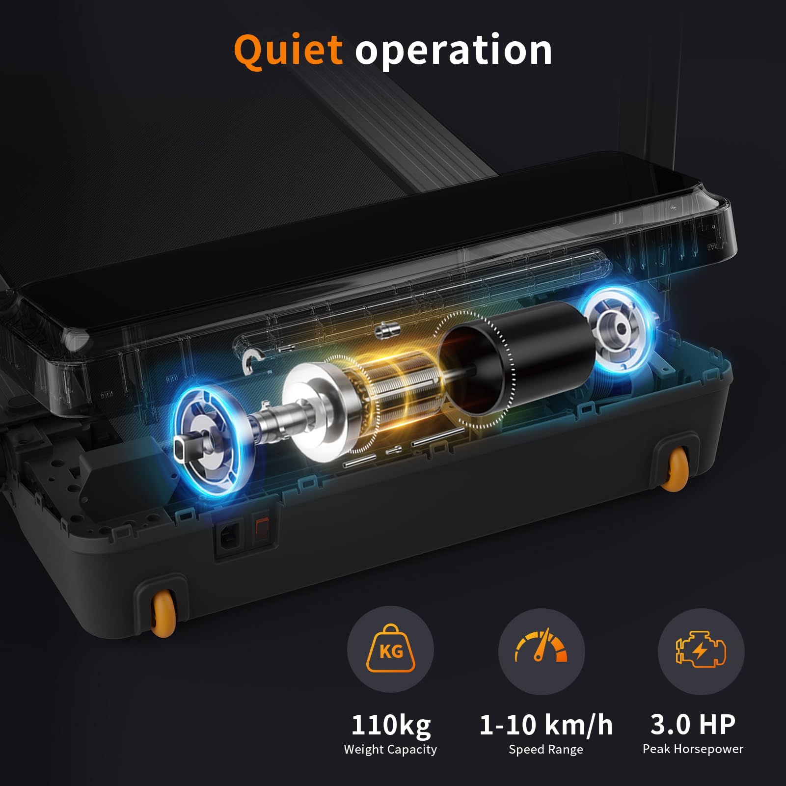 Enhanced for Comfort and Convenience - Upgraded large wheels make moving the walking pad foldable over carpets or uneven surfaces effortless. The 40 cm x 120 cm running surface provides ample space, while the multi-layer shock-absorbing belt protects your joints for a smoother run. Noise-reduction technology makes it ideal for flats and shared living spaces.